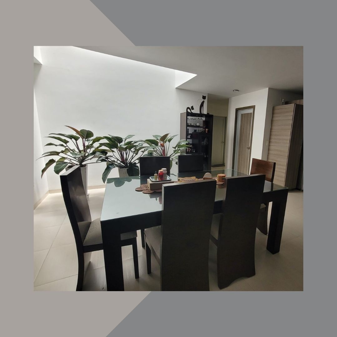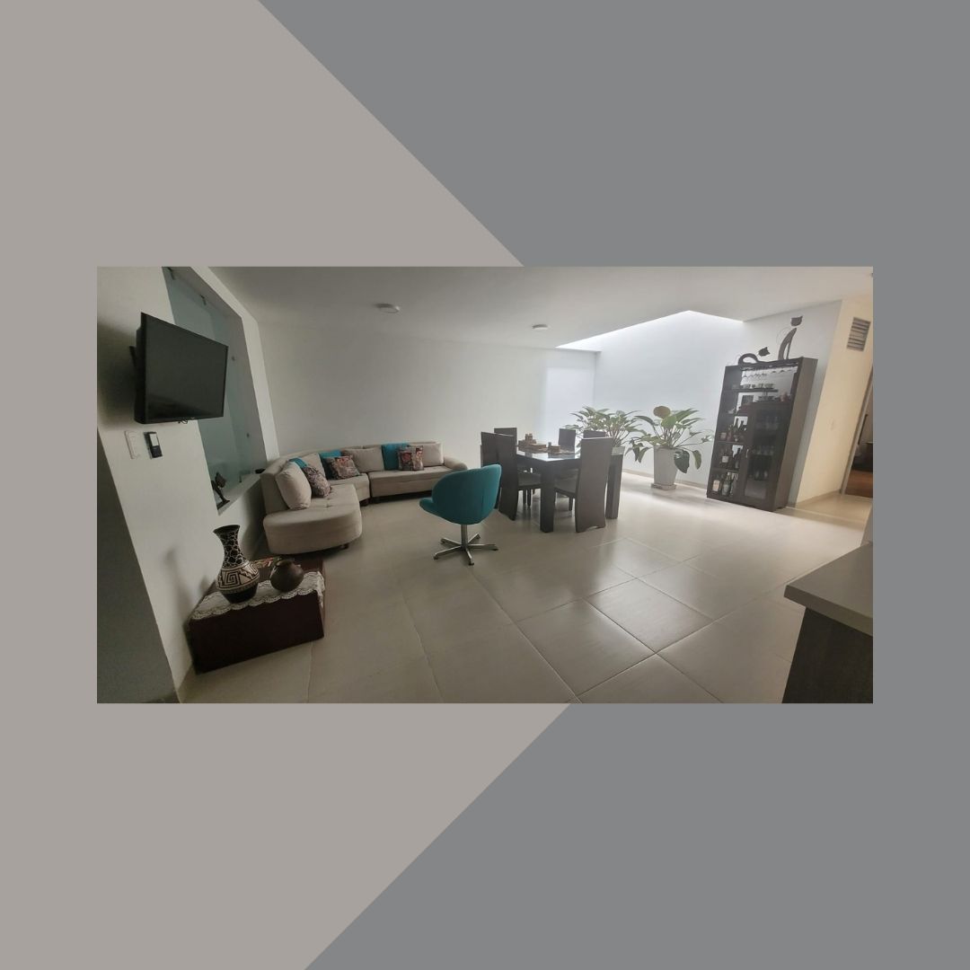Garaje doble, Sala espera, Sala principal, Comedor, Patio de luz, Cocina integral, Baño social, Zona de oficios, 1 alcoba con closet y baño privado aire acondicionado